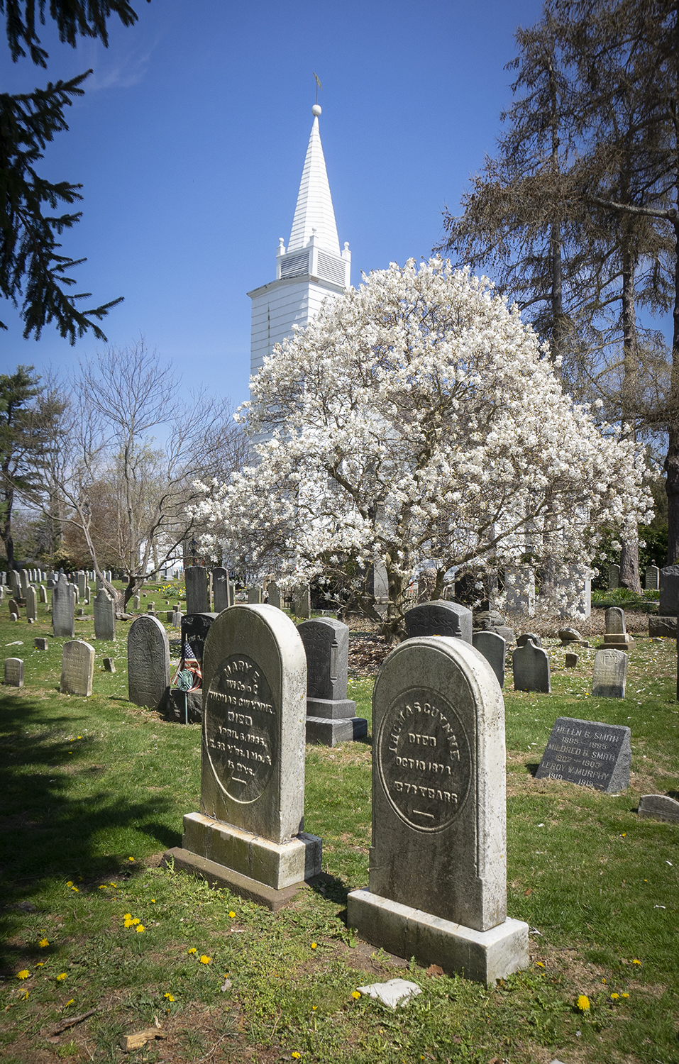 I woke up this morning with some regret that I had not made more of an effort to travel into NYC to photograph the absence of an Easter Parade on Fifth Avenue, but with the COVID-19 situation I know it was the right thing to do for my family. Instead I decided to make a mid-day photographic pilgrimage to various churches around Setauket and Stony Brook, New York. The mandated lockdown rendered this year’s celebration of the resurrection void of people who would normally have gathered in these houses of worship on this day, but the beauty of lives, present and past, accompanied me at each stop.