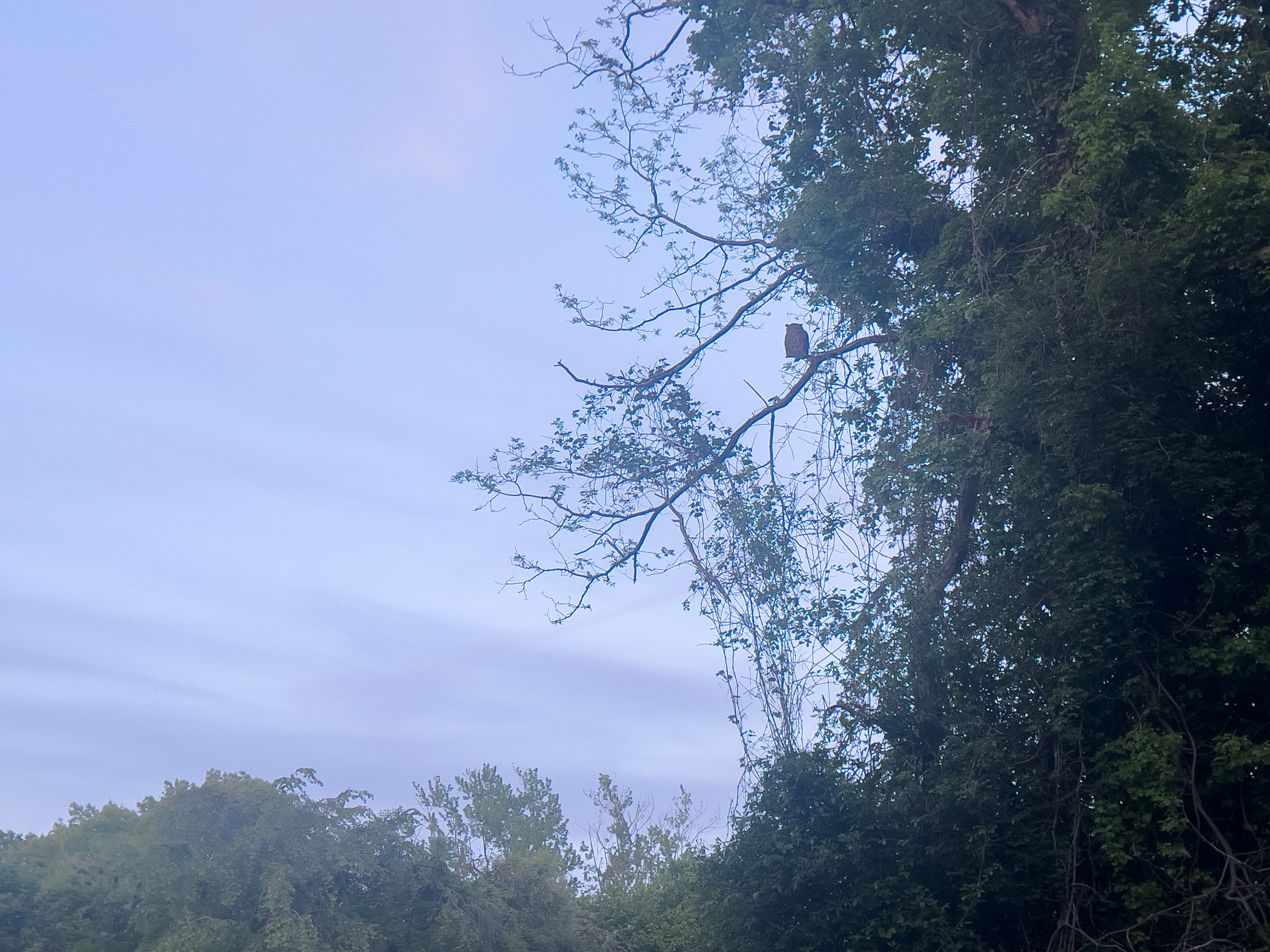 A Great Horned Owl watched over us as we walked the trail this evening. It sat on a branch undisturbed by the passing of two humans and their domesticated wolves. There is much here for magical thinking, and I’ll take it. Mom is communicating that she knows we miss her, but all is well, and that she is happy about the approaching arrival of her first great-grandchild, my first grandchild, my daughter’s first child; hope, resilience, and the persistence of life from the seeds we carry within us. These days of celebration are about acknowledging the joy we create for each other every day we have the breath to blow on dandelion heads. There is no guarantee that we will see a new morning.